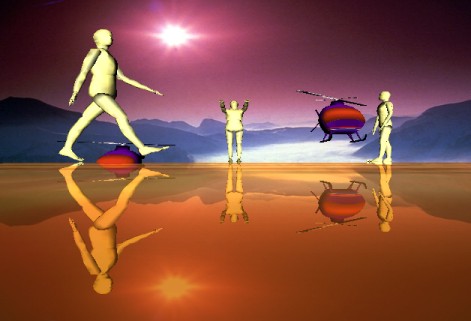 Converted the software-3D-engine to use hardware acceleration and added a few more features. These included instancing, full hierarchical transformations and animation. Screen shot of it in action
