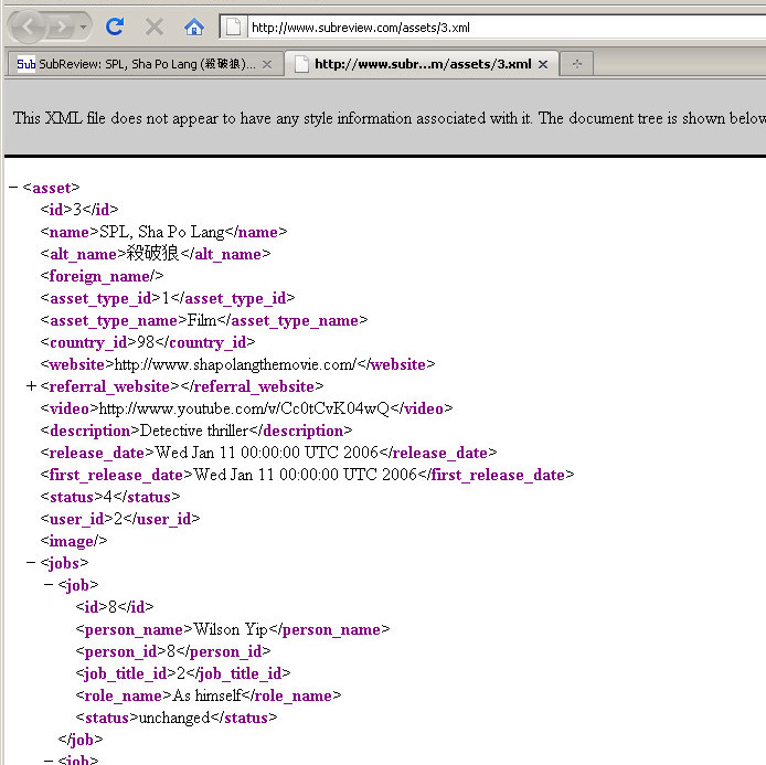 Below is a screen shot of an Asset resource being rendered as XML. The controller knows to render xml instead of html due to the .xml extension.