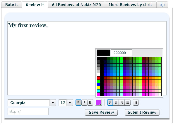 Rich text is allowed for the review.